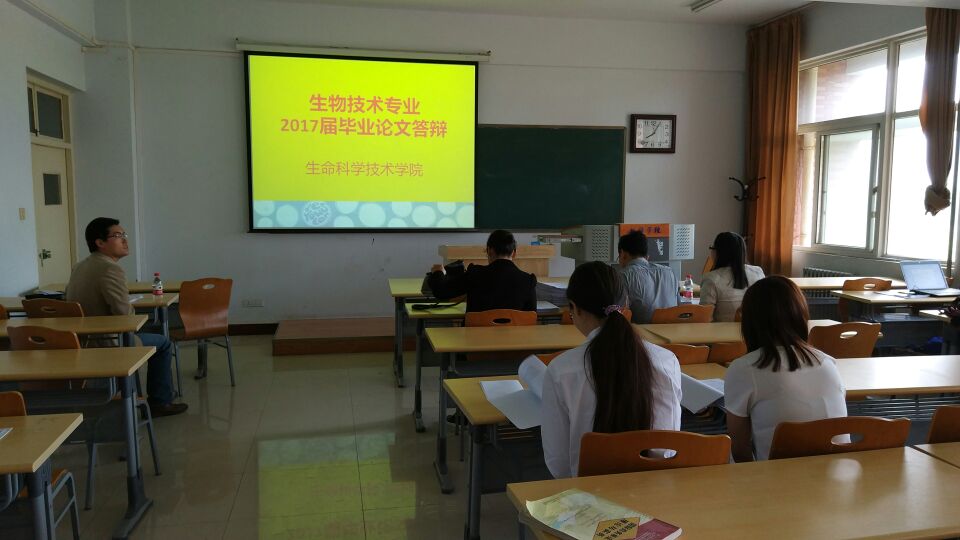 2017年5月6日,我院开展2017届生物技术专业毕业生论文答辩工作。毕业论文是教学过程中重要的实践教学内容,毕业答辩是检验本科人才培养质量和效果的重要环节,我院领导对毕业生答辩工作非常重视,先后召开了多次会议,反复强调论文答辩工作的重要性和严肃性,并对答辩工作进行了精心安排、详细部署。此次生物技术专业毕业论文答辩工作共分4个小组进行,答辩过程分为两个环节,首先是答辩同学对自己的论文从目的意义、材料与方法、结果与分析及小结等几个方面简明扼要的向评委展示了自己的论文内容。然后,答辩老师针对学生的论文内容提出问题,由同学现场答辩,答辩秘书做书面记录。答辩过程中,各组答辩教师认真负责,答辩现场气氛严肃而融洽,程序井然有序,学生也从这次答辩中再次针对所学专业从学术和研究实践层面有了更深层次的认知和提高,本次生物技术专业毕业论文答辩任务顺利完成。