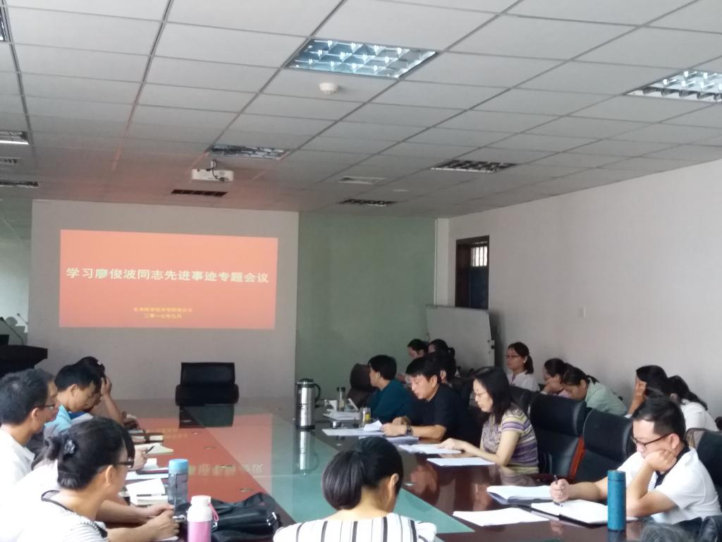随后,田涛书记传达了校党委关于开展向黄大年同志、廖俊波同志学习的文件精神并讲述了两位同志的先进事迹。