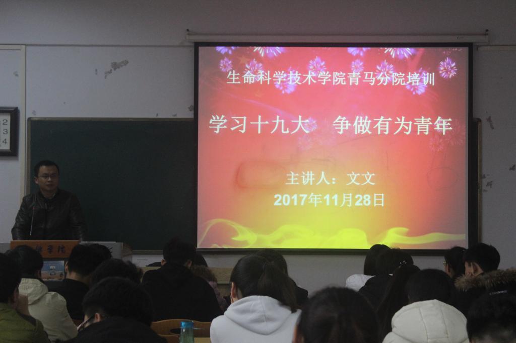 为深入学习马克思主义,提高大学生骨干的思想政治素质,我院于11月28日下午16:30在A14-408举行了以“学习党的十九大,争做有为青年”为主题的青马班培训课程。我院团总支书记文文为新一期成员授课,第二期青马班全体成员参加了此次课程。