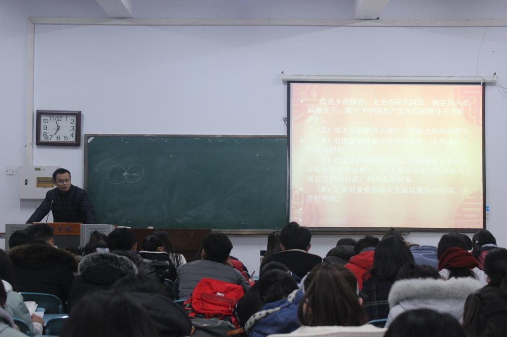为了让同学们更好的了解党的宗旨和理论,提高学生的思想政治素质,我院于11月30日晚七点在A05-204举行第二十一期第二次党课培训,此次党课培训主讲人为我院团总支书记文文。