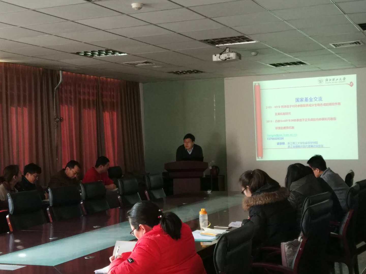 2018年2月1日,生科院召开国家自然科学基金项目申请经验交流座谈会。会议由任敏院长主持,由我院特聘教授、浙江理工大学生科院梁宗锁院长主讲。我院二十多名自然基金申报人员参加了座谈。