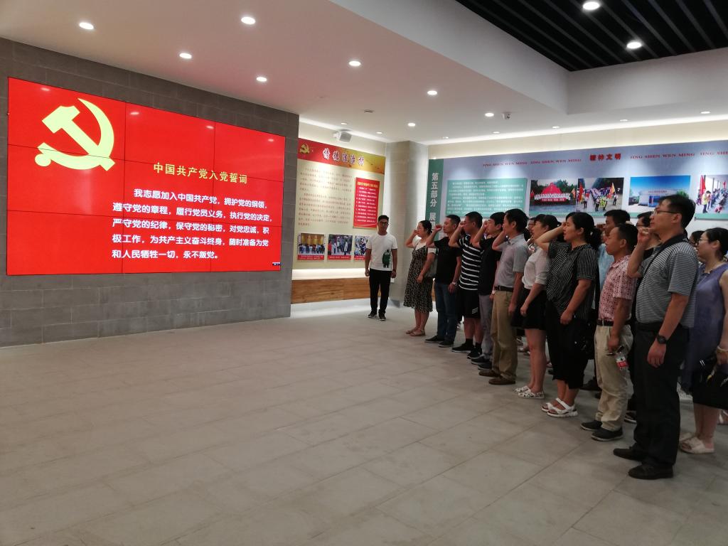 走进裴寨社区,浓郁的文化氛围和裴寨人积极向上的精神风貌深深感染着我们。在讲解员的引领下,大家观看了裴春亮先进事迹宣传片,先后实地参观了党建展览馆、农民红色课堂、跨境电商体验中心、裴寨水库工程等,仔细聆听了讲解员对“昔日裴寨”、“感恩奉献”、“共建家园”、“夯实根基”及“展望未来”五大部分内容的介绍,了解了裴寨由落后贫穷、生活条件艰难到今天发展劲头高涨、人民生活幸福的奋斗历程,通过展示的昔日裴寨的“土窑洞”、深井泉等一系列真实的照片,裴春亮书记出巨资带领村民建设新村、挖水库、大力发展现代农业和特色旅游业等场景,切实体会了“听党话、跟党走、同创业、共致富”的裴寨精神,全体党员为裴春亮书记“乡亲不富誓不休”及“用感恩的心完善一切”的奋斗精神而感动。