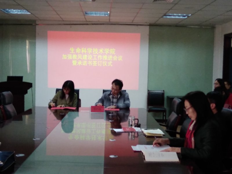 10月16日下午,我院在5楼召开加强教风学风建设工作推进会议,学院领导、所有教师参加会议。会上首先宣读了《yl6809永利集团加强教风建设承诺书》,随后任敏院长分别与教研室主任签订了承诺书,教研室主任分别与老师签订了承诺书。