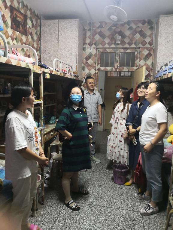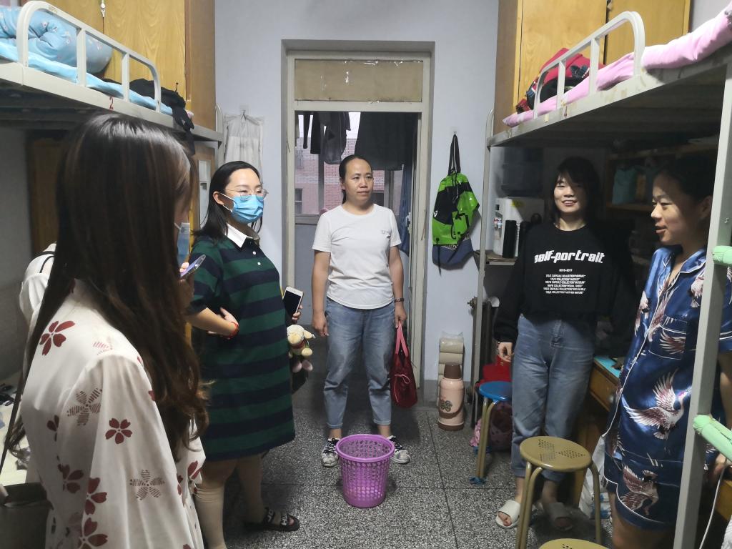 为全面深入细致了解学生的开学报到情况,扎实做好学生返校开学后的工作,9月15日晚我院党委副书记原玉丰,团总支书记文文,辅导员吴亚旗、靳筠、尚亚彬、杨颖莹和姚澜前往宿舍走访慰问学生。