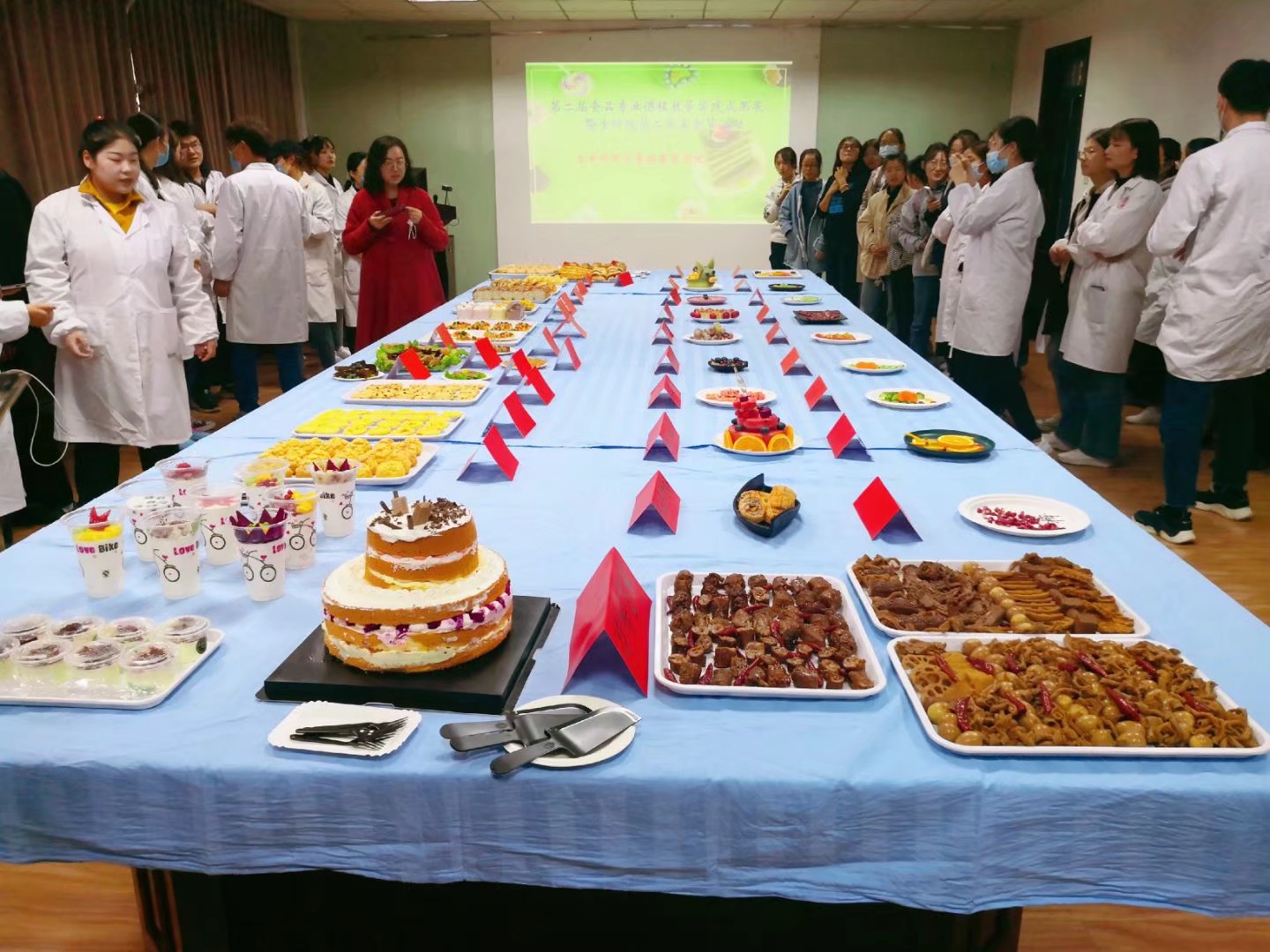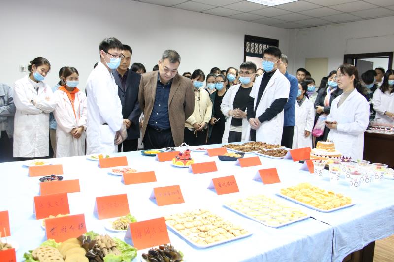 为倡导绿色、健康、安全、营养的饮食观念,更好的宣传校园健康饮食文化,检验食品专业学生的专业课课程实践学习成果,生命科学与基础医学学院于2020年11月5日下午16:30在A13号楼五楼会议室成功举办了第二届食品专业课程教学实践成果展暨美食节活动。校党委书记尚宝平、副校长王选年、副校长张丽伟等学校领导及生命科学与基础医学学院数百名师生汇聚一堂,现场品鉴美食。