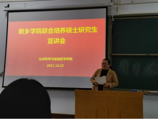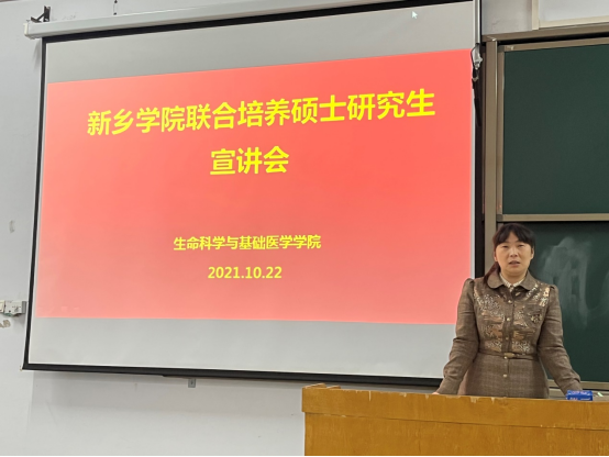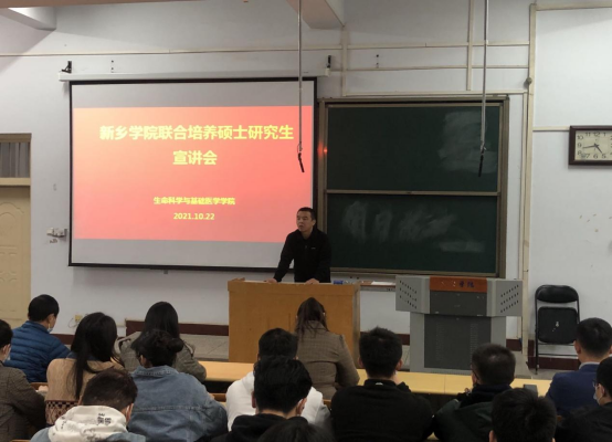 为了让学生深入了解我校联合培养硕士研究生研究团队研究方向、研究成果和相关政策,进一步吸引更多优质生源报考我校联合培养硕士研究生,按照《生科院本科生考研工作实施方案(试行)》要求,2021年10月22日下午,生科院在A01-224举行了yl6809永利集团联合培养研究生宣讲会,学院院长张艳芳、联合培养硕士研究生导师团队成员、生物技术专业创新引飞导师、联合培养的在读研究生、2019级生物技术、2019级生物技术(合办)及2018级生物技术部分同学共计300余人参加宣讲会。会议由生科院副院长郭晖主持。
