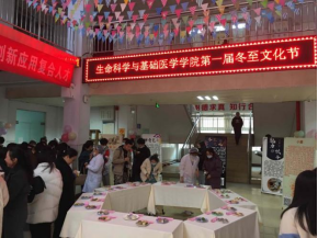 “冬至大如年”,在中华民族传统的重要节气--“冬至”--来临之际,为弘扬中华传统文化、增强学生文化自信,检验学生的专业知识与创新应用能力,生命科学与基础医学学院组织师生昨日在A13号楼一楼大厅圆满举办了的首届冬至文化节。