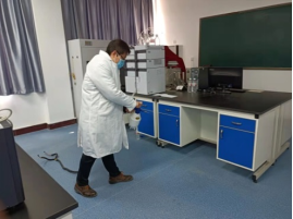 会议结束后,学院实验实训中心组织实验室管理员和平台研究生对全院实验室、研究室及公共空间进行了消杀。下午学院领导带队,对全院所有实验室实验教学线下准备工作及实验室清洁消杀情况进行了检查。针对检查中发现的个别实验室清洁不到位、消防通道堵塞等问题,学院要求进一步提高认识,夯实责任,立即整改,落实到位,并强调严格按照学校及学院的实验室疫情防控工作方案执行,全力保障实验教学的高效有序开展。