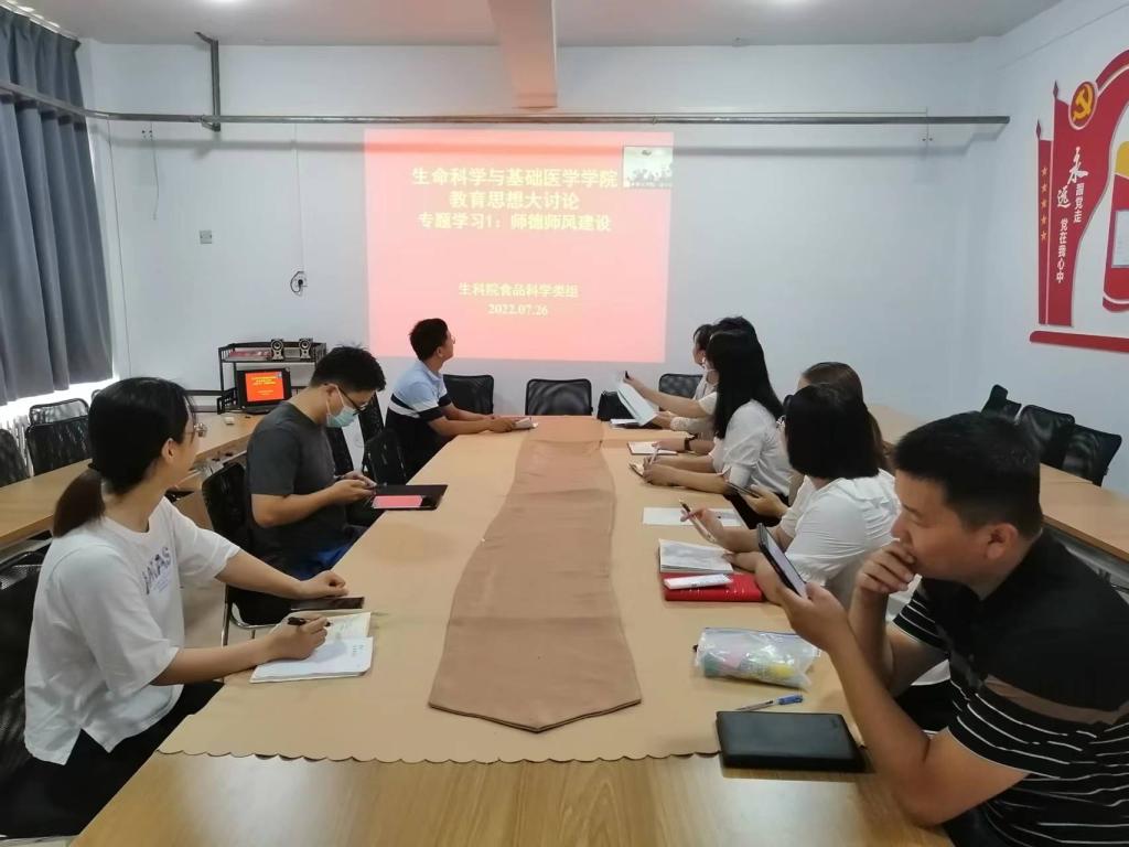 为扎实推进教育思想大讨论工作,按照《生命科学与基础医学学院教育思想大讨论工作实施方案》部署,7月26日下午,生命科学与基础医学学院食品科学类学习小组在学院三楼会议室开展师德师风建设专题学习。