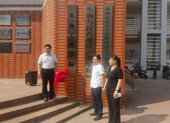 9月5日下午,在A13号楼一楼大厅前广场,生命科学与基础医学学院举行更名揭牌仪式,副校长王天云、学院党委书记田涛、院长张艳芳、动物疫病分子诊断河南省工程实验室主任兼副院长孙国鹏和党委副书记魏亮和全体教职工及学生代表参加仪式,仪式由党委副书记魏亮主持。