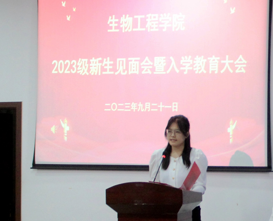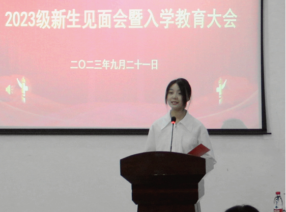 会议在嘹亮的国歌声中拉开序幕,田涛代表学院对2023级新生的到来表示热烈欢迎。张艳芳介绍了学院的师资力量、教学环境以及专业优势,勉励同学们努力学好专业知识,不断提升专业技能,丰富文化底蕴,严于律己,多思勤问。教师代表贺珧珈以自身经历鼓励同学们明确方向,求真求远。2022级学生代表李炎锦从学习和生活两方面分享如何走好大学人生路。2023级新生代表张景在发言中展现出对大学生活的憧憬和渴望。最后,王天云做总结讲话,对广大新生提出三点希望:一是细节是成功的基石,鼓励大家在学习生活中注重细节,做到精益求精。二是要有务实的精神,鼓励同学做行动的巨人,做到言行一致。三是以积极的态度面对人生,坚持不懈地追求梦想,笑迎新生活。