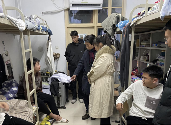 在走访慰问过程中,田涛与同学们进行了亲切的交谈,并深入了解了他们的寝室生活情况和学习状态。他叮嘱同学们要增强安责任意识,严格遵守学校规章制度,规范宿舍文明行为;面对即将到来的极寒雪天,要及时增添衣物、尽量减少外出,杜绝安全事故发生;必要时要备好药物,戴好口罩,做好自我安全防护;要合理安排学习时间,积极调整好状态备战期末考试。他鼓励同学们要树立明确的目标,鼓足干劲,以良好的精神面貌对待大学的学习和生活。