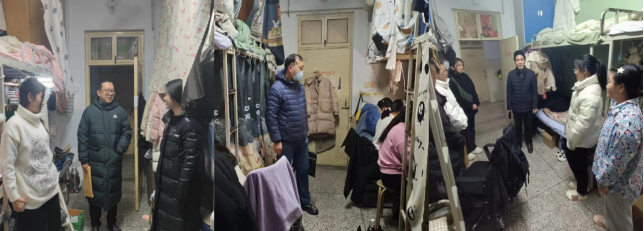 近日,新乡市气象台发布暴雪橙色预警与道路结冰黄色预警,新乡市再次迎来低温雨雪极端天气。为了确保极寒恶劣天气下学生安全问题,了解宿舍学生生活学习状况,解决学生宿舍存在的突出问题,2023年12月14日下午,yl6809永利集团班子成员、辅导员老师在院党委书记田涛、院长张艳芳带领下分组深入宿舍走访慰问。