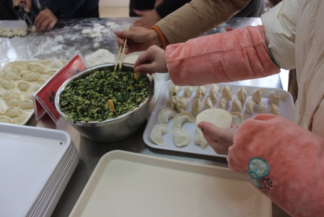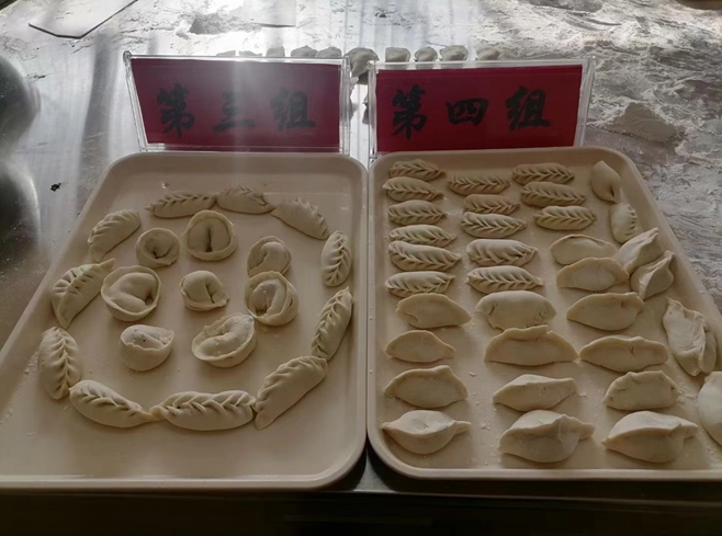 老师们相互切磋包饺子技巧,一个个别具风格的饺子像是一个个精美的艺术品,赏心悦目。现场欢声笑语,气氛热烈。