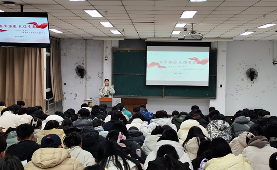 伴随着征兵宣传片中嘹亮的军歌,宣讲会正式开始。卢韵宇首先对同学们进行了国防教育,让同学们对军营和部队有了更加全面的了解。接着,向同学们介绍了参军入伍的体检要求、政治考核要求及优待政策,鼓励同学们携笔从戎、保家卫国,提醒有意参军的同学对照自身实际情况尽早准备。
