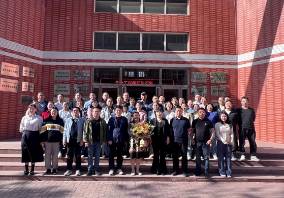 最后,学生代表给蔡老师敬献祝福鲜花,田涛给蔡老师颁发了纪念品,并与全体教师合影留念。