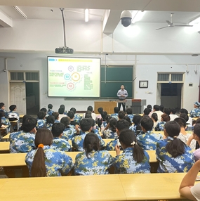食品科学与工程专业教研室主任田金河为新同学们首先详细地介绍了学校、学院的发展历程、学科建设、师资队伍状况和科研与教学情况,帮助广大新生熟悉学校学院历史底蕴,领悟科学文化,明确发展前景。然后,从本专业培养体系、课程学分要求、专业基础素养、未来就业方向等相关方面展开讲解,帮助广大同学们加深专业认知和能力培养意识,探索发展方向,明确个人生涯规划。
