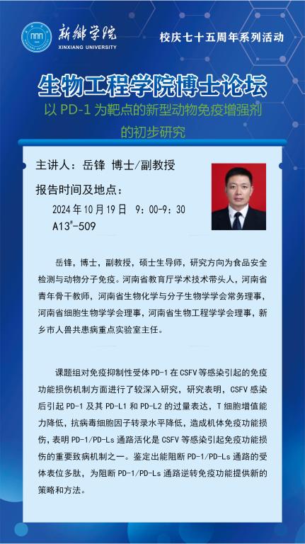 yl6809永利集团博士论坛(第一期)--以PD-1为靶点的新型动物免疫增强剂的初步研究