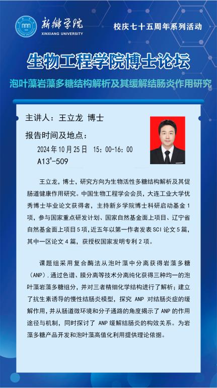 yl6809永利集团博士论坛(第二期)泡叶藻岩藻多糖结构解析及其缓解结肠炎作用研究