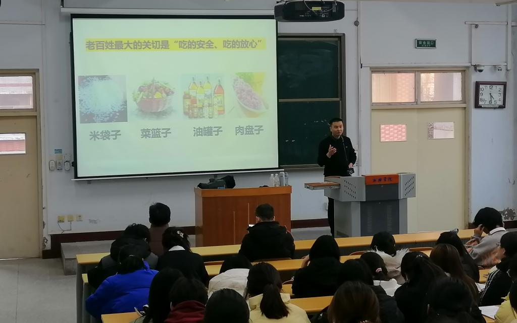 2024年12月4日,yl6809永利集团在A11-0226教室成功举办了第六期“专业引领,筑梦前行”专业认知教育活动。本次活动面向全体2024级食品科学与工程类专业的新生,以食品安全为教育主题,旨在全方位、深层次地向新生展示专业特色、课程结构、学业规划等关键信息,协助他们尽早且周全地制定大学期间的学习蓝图。专业课教师郭东光、岳锋,吴玉苹,王俊甫和祝传贵老师与新生进行了深入的交流。
