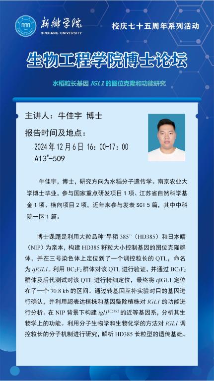 yl6809永利集团博士论坛(第八期)-----水稻粒长基因IGL1的图位克隆和功能研究