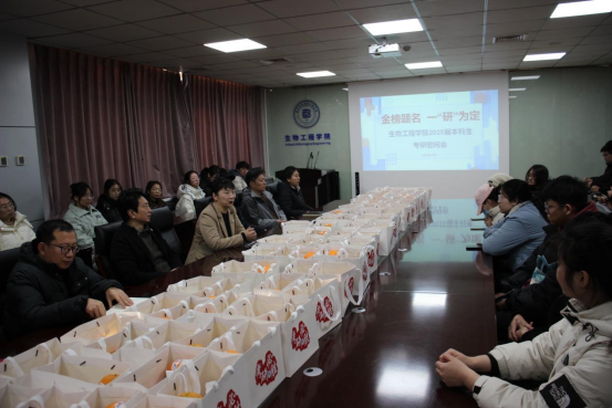 会上,领导和老师们与考研学子进行亲切交谈。对考研学子们在备考期间付出的努力和汗水表示高度赞赏,肯定了他们为追求梦想而展现出的坚韧不拔精神。鼓励同学们要保持良好的心态,积极乐观的面对考试压力,考试过程中保持冷静和自信。同时,还强调学院始终是同学们最坚实的后盾,会全力为大家提供支持和保障。希望同学们能够放下包袱,轻装上阵,在考场上发挥出最佳水平。随后领导和老师们为考研学子发放学院精心准备的考研加油包。加油包内放有橙子、苹果和旺仔牛奶,寓意一战‘橙’功、‘苹’稳上岸和运气旺旺。收到加油包的同学们备受鼓舞,对学院领导和老师的关怀纷纷表示感谢。