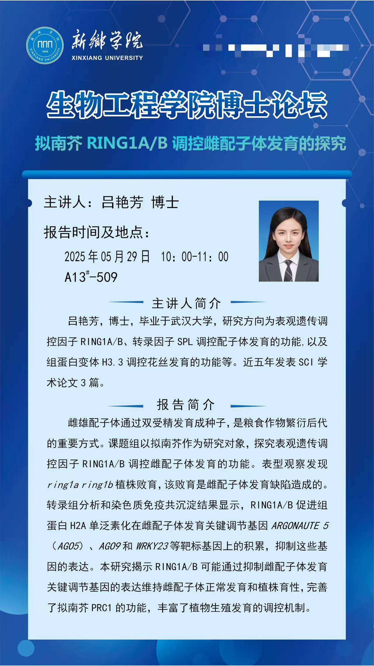 yl6809永利集团博士论坛预告(第八期)-----拟南芥RING1A/B调控雌配子体发育的探究