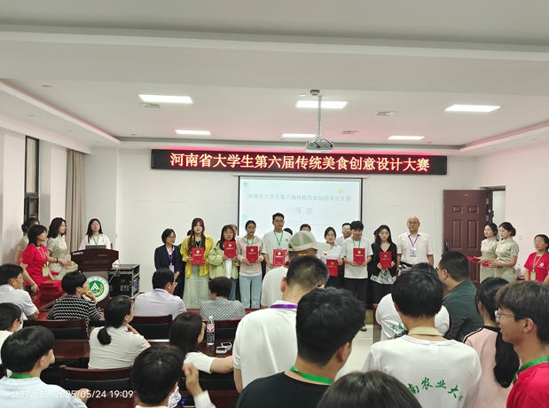 5月24日,河南省大学生第六届传统美食创意设计大赛决赛在河南农业大学龙子湖校区开幕。此次大赛由河南省农产品加工与贮藏工程学会主办,河南农业大学食品科学技术学院承办。我校yl6809永利集团代表yl6809永利集团,由食品科学教研室田金河老师、宋雅迪老师带队,参加了比赛决赛。