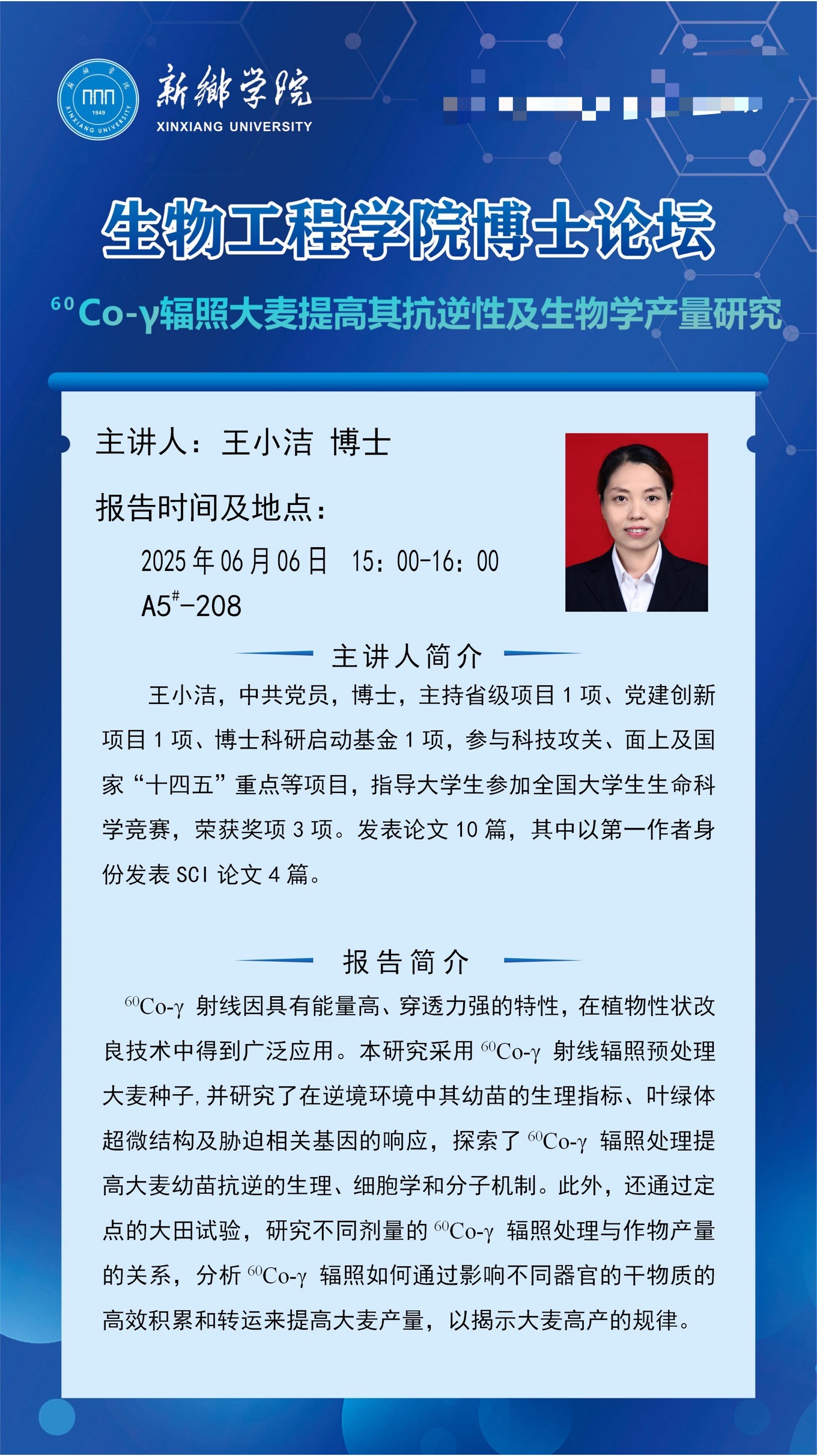 yl6809永利集团博士论坛预告(第九期)-----60Co-γ辐照大麦提高其抗逆性及生物学产量研究