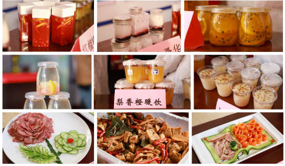 本次美食节以“漫寻六方‘百’味 精研一脉‘食’光”为主题,由食品科学教研室主办,以2022级食品科学与工程专业《食品美学》课程为基础,同时融入了食品科学与工程类各专业各年级学生的创新作品,在李雪华、田金河等专业老师的指导下,同学们实现了专业课程知识的实践转化,最终呈现为一道道具象的美食作品。
