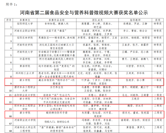 2025年11月23日,由河南省教育厅主办的第二届河南省大学生食品安全与营养科普微视频大赛决赛在许昌学院圆满结束。本届赛事面向全省高校征集优质科普作品,共有28所高校的51部作品进入决赛,影响范围广、参与度高,在推动食品安全知识传播、倡导健康饮食理念、提升公众科学素养等方面具有重要社会意义。