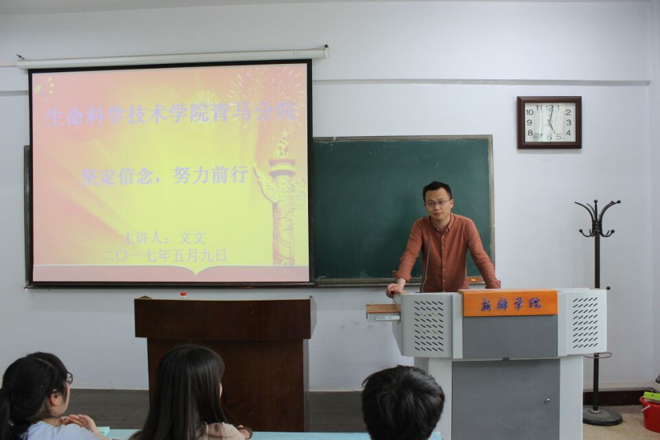 为了提高学生们的思想觉悟,学习马克思主义,培养大学生骨干, 2017年5月9日下午,文文老师为我院第一期青马班授课,我院青马班学员积极参与本次授课。