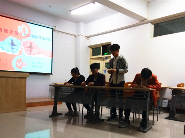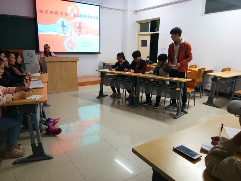 为增强辩手对于辩论技巧的掌握和现场的应变能力,我院与新闻传播学院于4月14日19:30在A14-411举行辩论队友谊赛。担任此次大赛评委的是我院与新传学院学生会各部门部长。