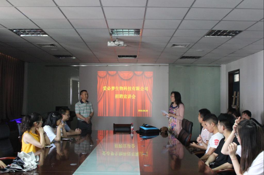 为增进我院与企业的交流与合作,为毕业生提供更多的就业选择。我院邀请“爱必梦生物技术有限公司”创始人李沛祥于5月6日下午四点半在我院五楼会议室进行招聘宣讲。我院院长任敏、团总支书记文文参加此次会议。