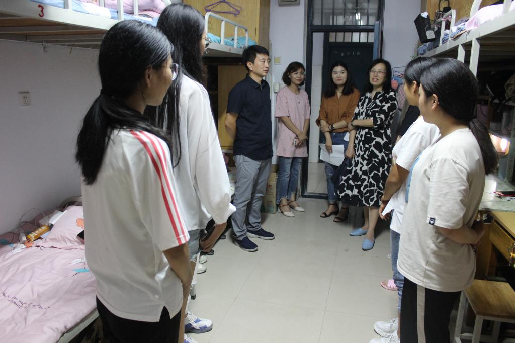 9月13日下午,我院党总支书记田涛、院长任敏以及各年级辅导员深入学生宿舍慰问2018级新生。
