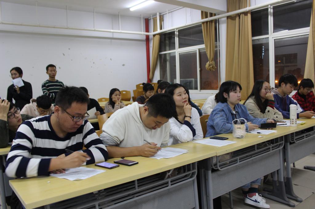 为提高元旦晚会质量,增加晚会亮点,呈现一个精彩的晚会。我院于2018年11月3日晚在A14-409教室举办元旦晚会第一次彩排。此次活动由学生会主席团及各部门部长担任评委,纪检部成员维持秩序,2018级新生踊跃参加。