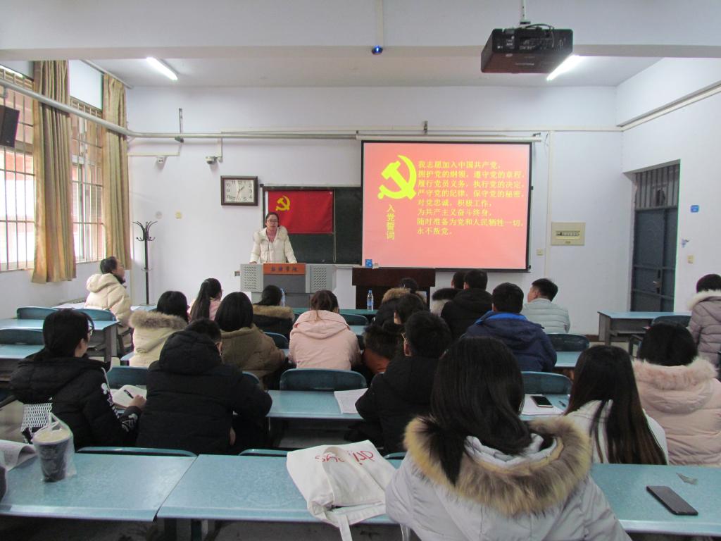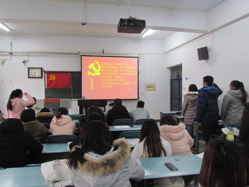 会议伊始,由主持人宣布会议纪律并由各支部纪检委员李文静、岳盼阁向大会报告参会情况。接着,由两个支部的组织委员田甲佳、杜林阳介绍此次发展党员的总体情况和支部发展对象和申请转正党员的详细情况,提出对其能否入党和按期转正的意见。然后,由各支部宣传委员徐赋、刘钇辛进行支委会汇报并提交党员大会讨论。到会党员进行讨论表示无异议,有表决权的正式党员投票对申请人的入党问题进行表决并由主持人宣布投票结果。会议最后,由牛娇娇老师、吴亚旗老师宣读大会关于接受申请人为预备党员,接受转正申请人为正式党员的决议。随后新发展对象对着党旗进行庄严宣誓,宣誓后由新党员代表李懿鹏、崔雨楠,预备党员齐晨阳、刘安南代表发言。最后,由两个支部书记牛姣姣老师、吴亚旗老师进行大会总结发言。