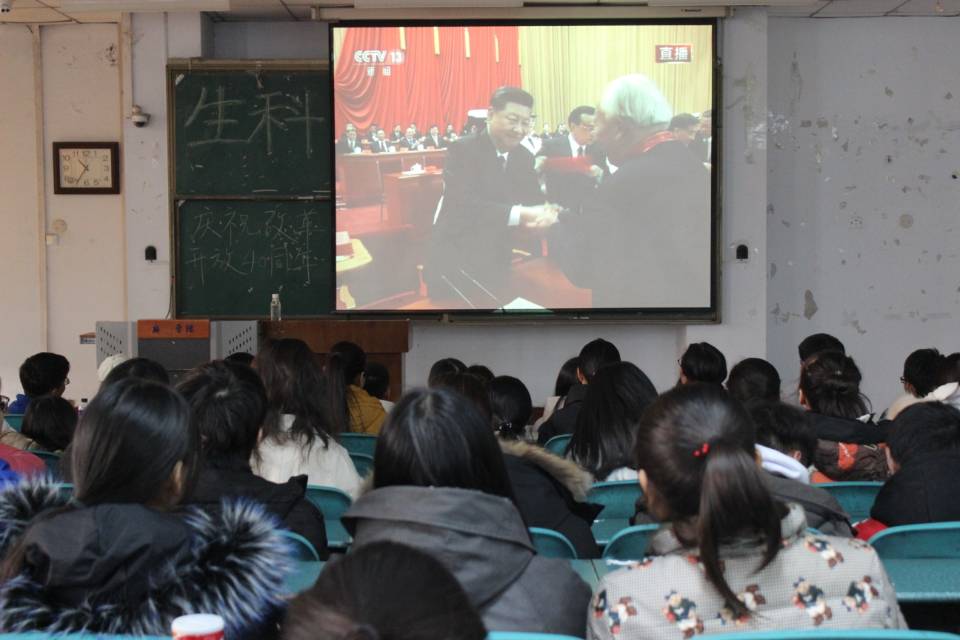 2018年12月18日上午10时,我院组织全院没课的师生观看了庆祝改革开放40周年大会直播,认真学习领会习近平总书记重要讲话精神,共同感受改革开放40周年丰硕成果。