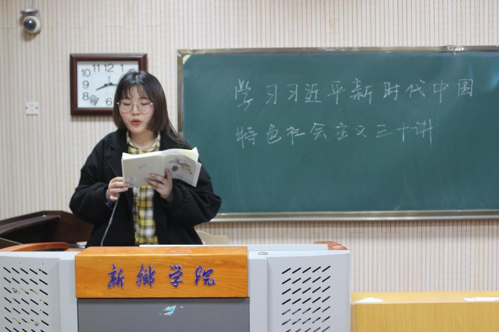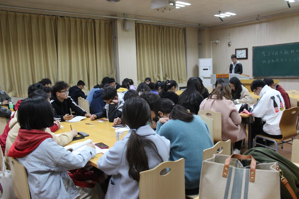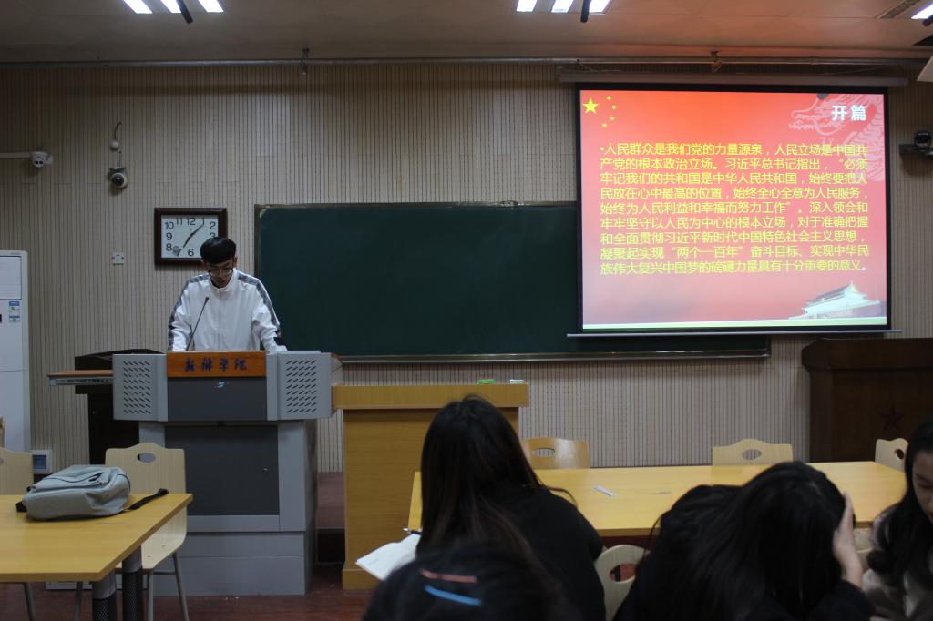 此次学习活动分小组进行学习,成员共分为五组,每组推荐一人以PPT的形式向所有青马班成员进行对“习近平新时代中国特色社会主义思想三十讲”内容的讲解,每组代表讲解内容丰富而又详实,PPT风格也各具特色。五个代表分别针对人民、建设美丽中国、中国特色社会主义思想、创新和党的领导五个方面进行讲解。他们指出人民、群众是党的力量源泉,要树立以人民群众为主体的思想;建设美丽中国功在当代,利在千秋;把重心放在创新驱动上,拓展内需,更好的发挥政府的作用等内容。