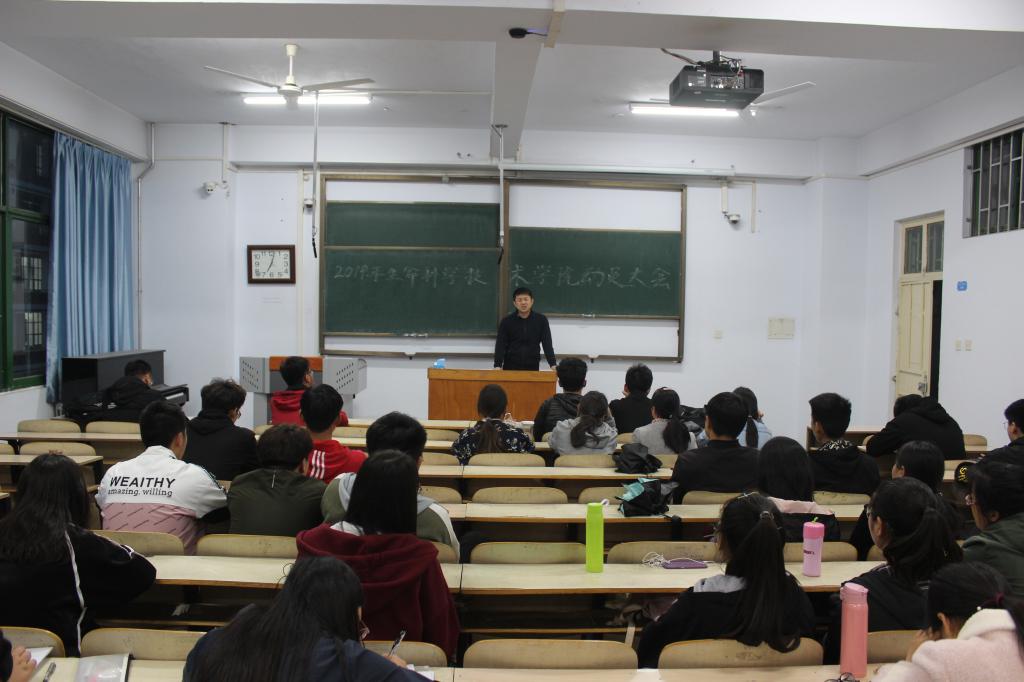 为积极响应校运动会号召,调动学生们的积极性,鼓励学生踊跃参与,保证运动会期间各项服务工作顺利有序的进行,我院于2019年4月12日晚上七点在A11-313召开运动会动员大会。辅导员杜林阳老师出席此次会议,全体运动员积极参加。