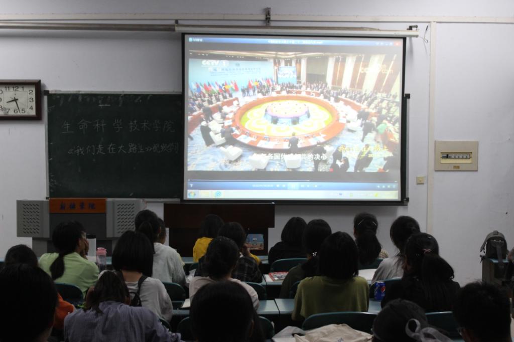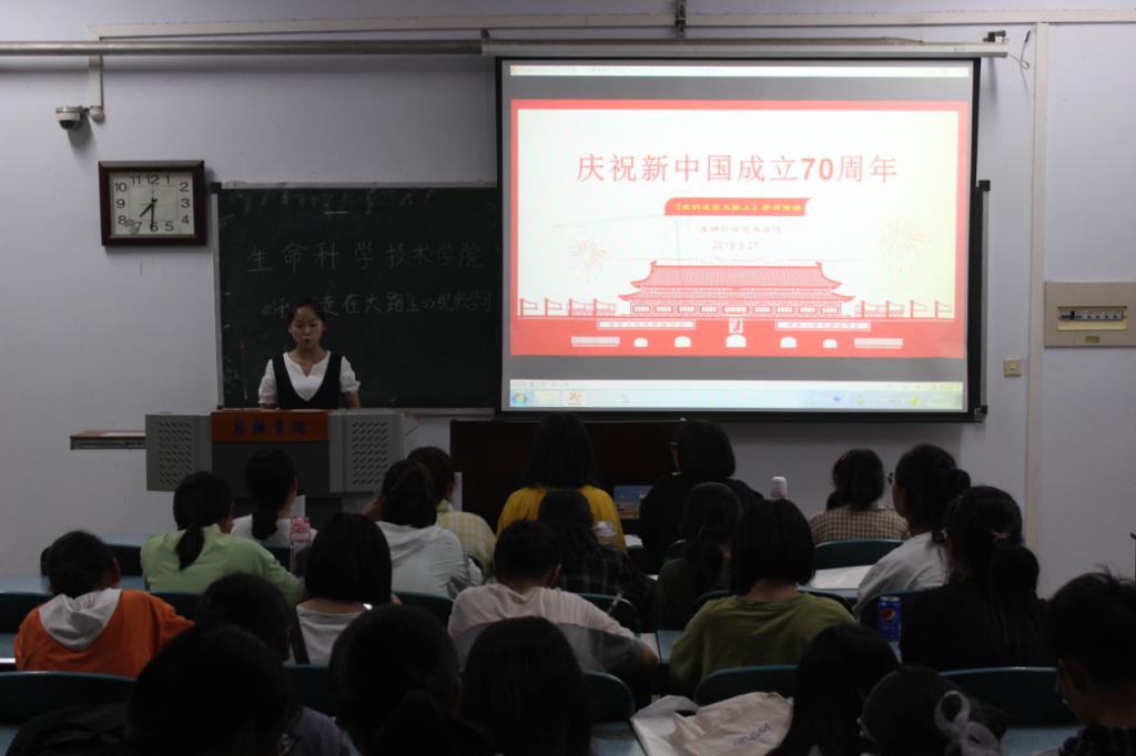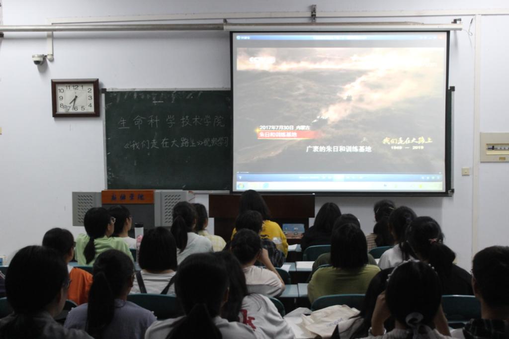 为庆祝祖国七十华诞,培养同学们爱国情怀,弘扬社会主义核心价值观,我院于9月27日19:30在A14-128教室组织学生观看爱国爱党纪录片《我们走在大路上》。