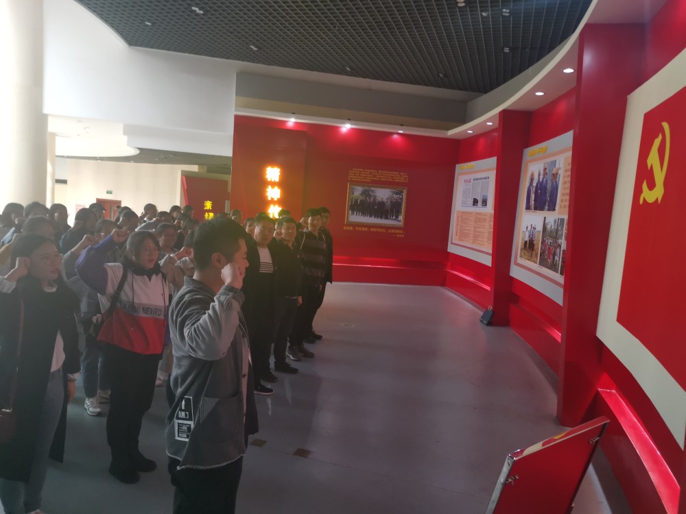 活动伊始,张萌书记、杜林阳老师带领全体学生党员乘车来到刘庄史来贺同志纪念馆并在馆前合影留念;接下来,张书记、杜老师带领全体学生党员参观纪念馆,在纪念馆内,大家仔细聆听史来贺同志的光辉事迹,并观看一幅幅图片和文字介绍,了解到史来贺老书记的生平事迹、刘庄三代住房、教育等内容,纪念馆里的一张张照片、一段段文字,都在无声地讲述着史来贺同志的先进事迹;接着,张书记带领全体党员在党旗下又一次重温了入党誓词;最后,张书记、杜老师和全体学生党员一起参观了史来贺同志的故居,深入体会了中国共产党“勤政廉洁,艰苦奋斗”的精神。