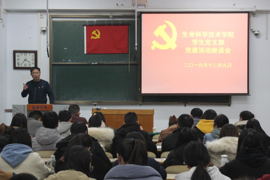 为深入学习贯彻习近平新时代中国特色社会主义思想,进一步加强党的建设和思想政治工作。我院于12月9日晚上19:00在A11-313教室召开党建工作座谈会。党总支副书记张萌,第一学生党支部书记杜林阳老师、第二学生党支部书记文文老师和全体学生党员参加此次会议。