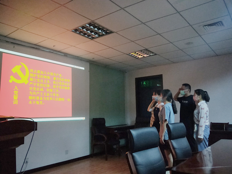 会议伊始,首先张书记总结了在疫情期间的工作,提出我们要不忘初心牢记使命,时刻发挥党员的先锋模范作用,要通过学习先进的理论知识保持自己的先进性,并对毕业生党员给予祝福。随后由李景瑞同志介绍本次发展党员的总体情况,然后由第一学生党支部组织委员田甲佳和第二学生党支部组织委员耿乾龙分别介绍新发展对象和申请转正党员的情况,并由张志育同志汇报对申请入党人的培养教育以及政审的情况,提出支委会对其入党的意见。紧接着正式党员通过投票对申请人的入党问题和转正问题进行表决。之后由杜林阳老师宣读党员大会关于接受申请人为预备党员,接收转正申请人为正式党员的决议,然后新党员代表及新预备党员代表进行发言,最后在正式党员李懿鹏的带领下进行入党宣誓。