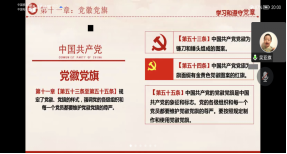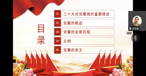 首先,吴亚旗老师阐述了《中国共产党章程》的内容,从二十大对党章重要修改展开讲解。接着,吴老师强调了学习党章的重要性及其意义,她表示学习贯彻党章是加强党的先进性建设的本质要求,是新时代大学生政治理论学习的基本要求。随后,吴老师对党章的概述、发展历程和总纲展开详细介绍,吴老师强调以党员的标准要求自己是同学们应尽义务和责任,对强化党章意识,增强同学们的创造力、凝聚力、战斗力具有极为重要的作用。最后,吴亚旗老师号召大家认真学习党章,严于律己,发奋学习,甘于奉献,坚定不移地听党话、跟党走,推进党的建设与发展。
