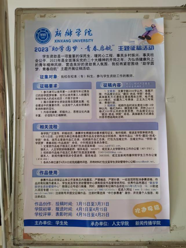 我院充分利用日常班会、学生谈心谈话等机会,多渠道、多层次、全方位地向学生宣传国家资助政策,营造了浓厚的宣传氛围。在班会活动中,各班通过辅导员宣讲、观看主题宣传片等形式学习、宣传资助政策。对于2023届毕业生,除了国家奖助学金、国家助学贷款政策宣传外,还加强了对基层就业、退伍士兵的学费补偿和国家助学贷款代偿等政策的宣传,取得了良好的宣传效果。通过“助学圆梦,青春起航”主题征稿活动,激励学生们立志成才、心怀感恩。学生座谈会的开展,为同学们提供了交流的平台,同学们在会上畅谈了对资助育人的理解,并纷纷表示会坚定理想信念,坚守诚信,发扬勤俭节约的优良传统。并且我院根据最新要求,对资助相关材料进行记录归档整理。