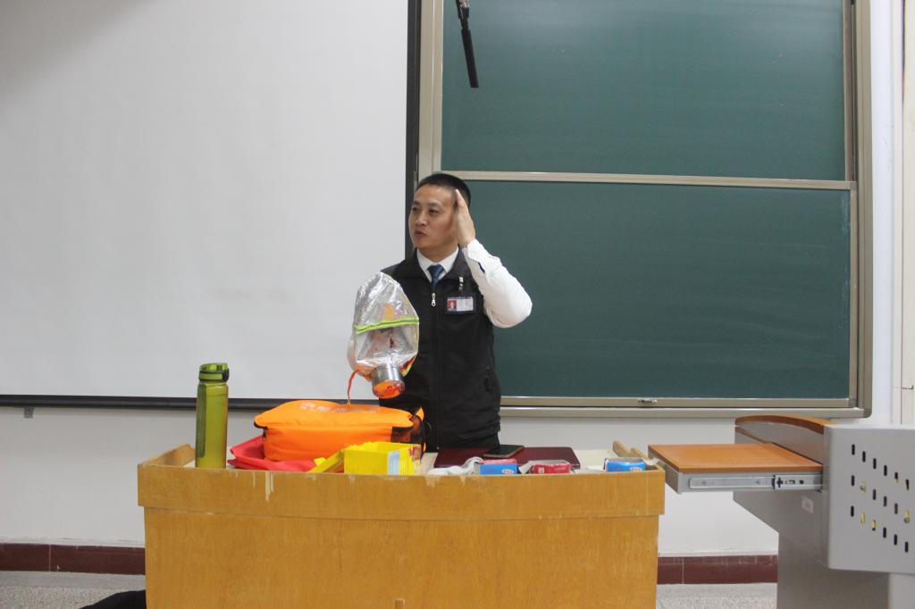 首先,李教员结合近年来发生的火灾案例,生动地阐述了普及消防安全知识,提升消防意识的重要性。强调消防隐患关乎生命安全,应提高对这项工作的重视程度,在日常生活中做好预防工作。然后,他向同学们展示了消防头套和相关的消防用具,重点讲解了其功能与使用方法。最后,李教员强调生命至高无上,安全是幸福生活的重要保障,在日常生活中也要时刻敲响安全警钟,多一份安全思想,少一份事故危机。