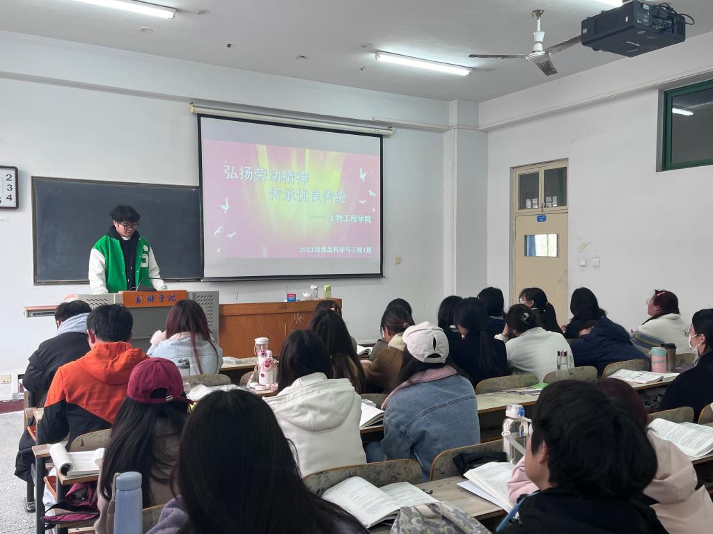 为教育引导同学们养成崇尚劳动、尊重劳动、热爱劳动的精神,助推常态化劳动教育持续发展,3月28日下午,yl6809永利集团2021级食品科学与工程一班在A11-304召开2023-2024学年春季学期“弘扬劳动精神,传承优良传统”劳动教育主题班会,班会由2021级辅导员宋博指导,班长曾圆棋主持,2021级食品科学与工程一班全体学生参加。