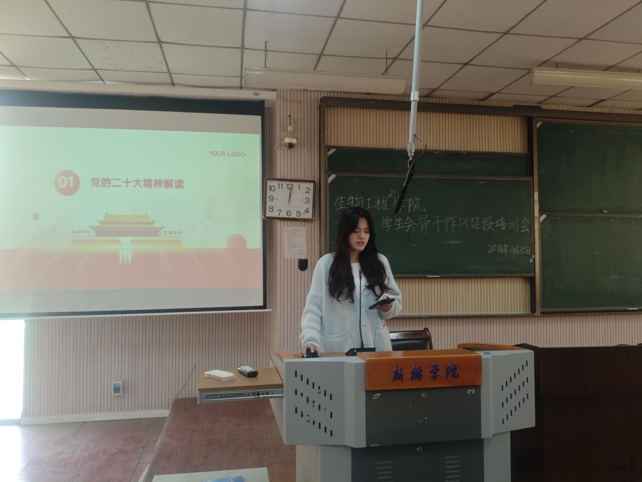 为贯彻落实党的二十大精神,加强学生会干部队伍建设,打造一批思想素质过硬、工作作风扎实、实践能力突出的学生干部,yl6809永利集团于10月28日中午在A05—101开展yl6809永利集团学生会骨干作风建设培训会。会议由yl6809永利集团学生会综合事务部部长张景主持,全体学生会成员参加。