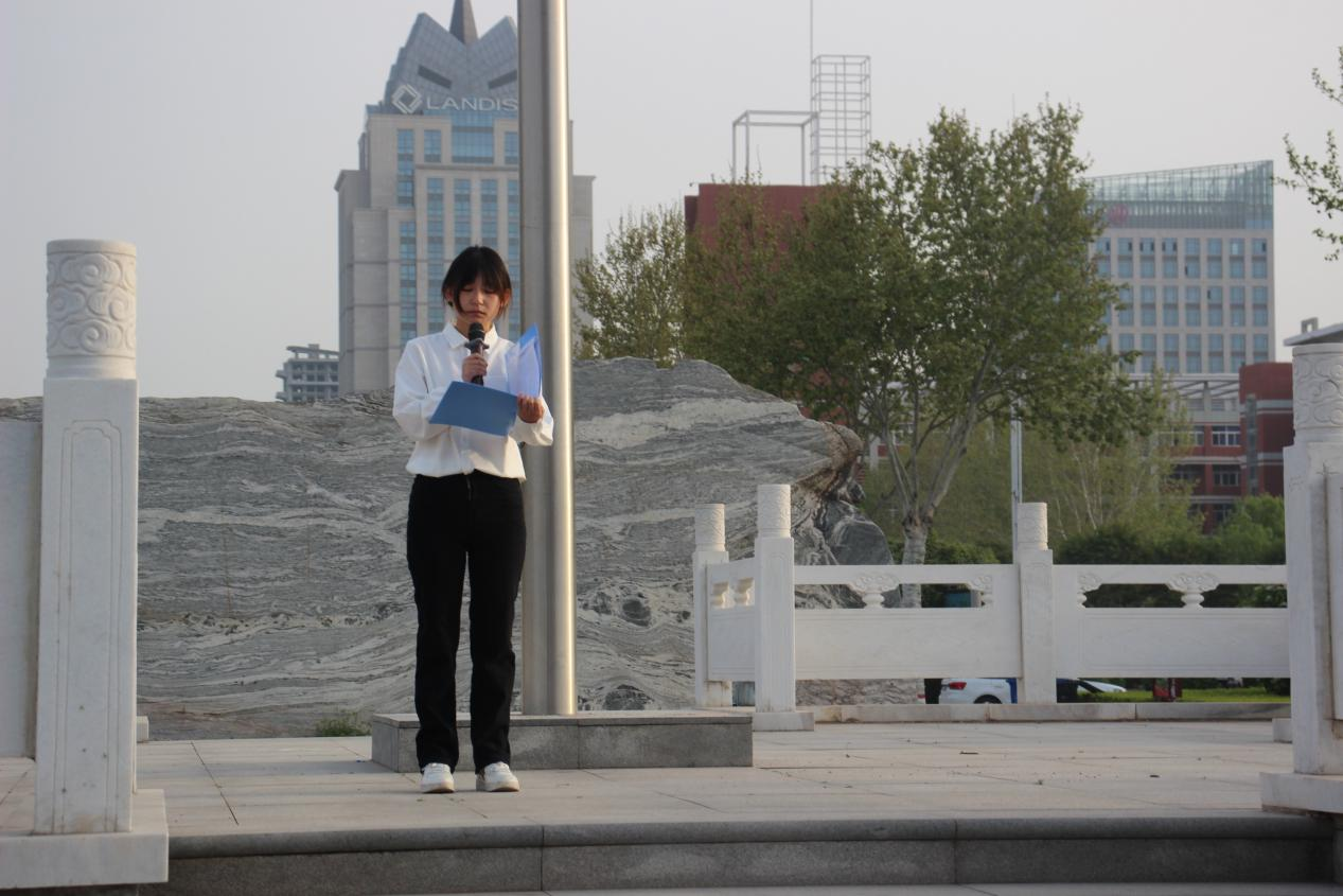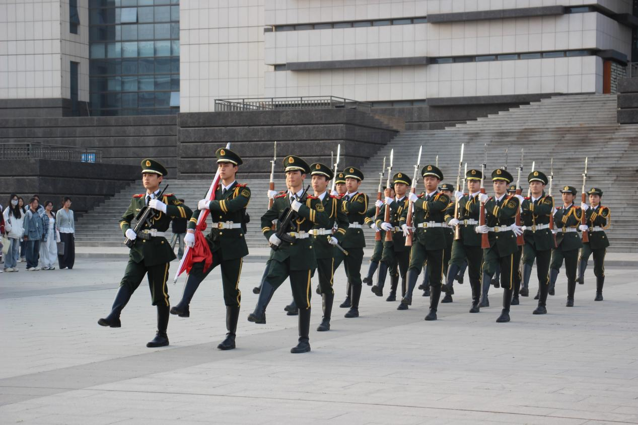 伴随着清晨的第一缕阳光,升旗仪式正式开始。首先,由国旗护卫队出旗,英姿飒爽的护旗手们高举鲜艳的五星红旗,迈着矫健整齐的步伐向前行进。接着,在雄壮嘹亮的《义勇军进行曲》中,五星红旗冉冉升起,在场的每个人都向国旗行注目礼,高唱国歌,嘹亮的歌声中满怀对祖国的无限热爱和崇高敬意。然后,管理学院的学生代表和国旗护卫队第十五届队员代表刘以恒分别发表了国旗下讲话,引导同学们树立正确的爱国主义观,呼吁同学们坚定爱国主义理想信念。